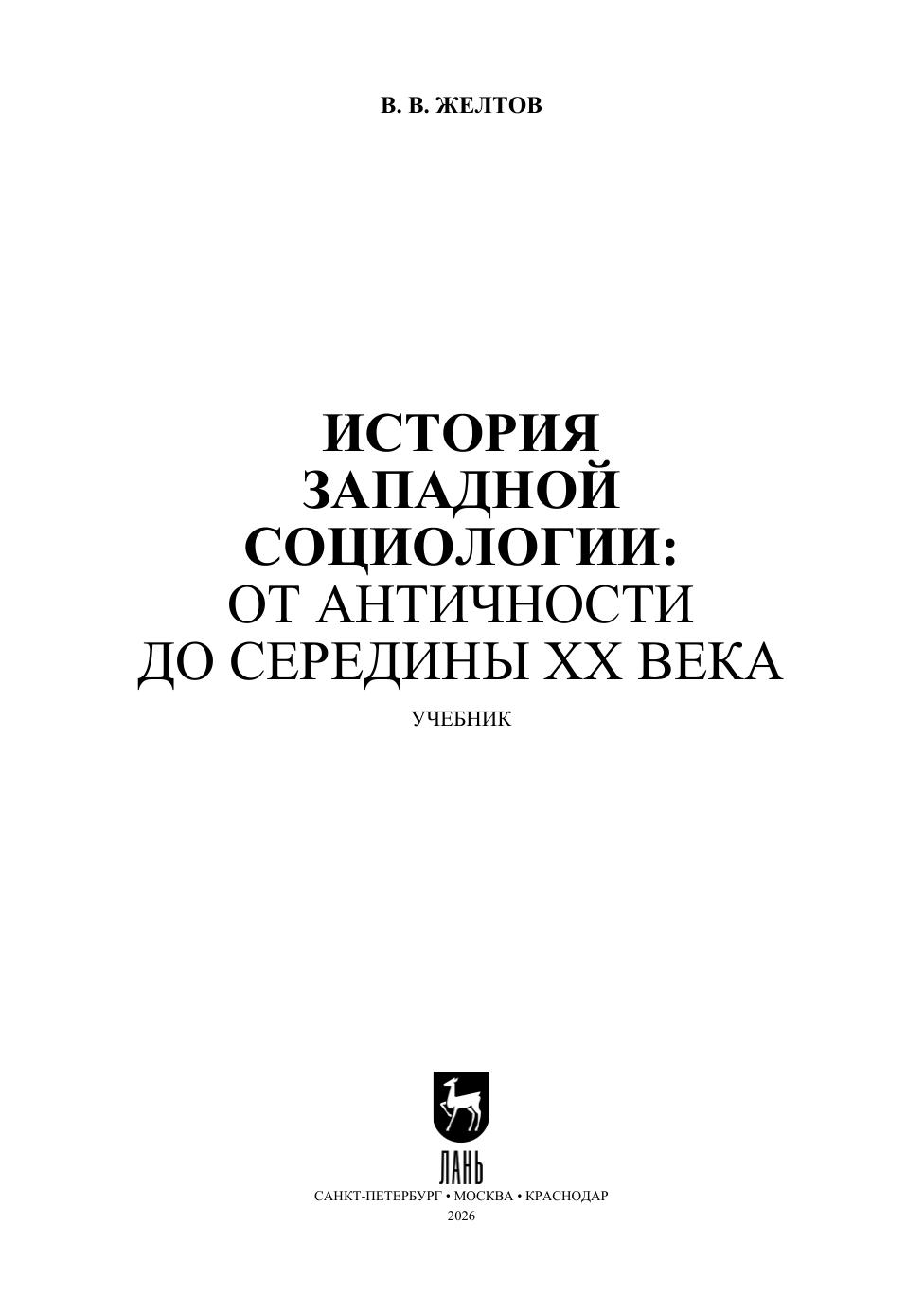 История западной социологии: от Античности до середины XX века Желтов В. В.
