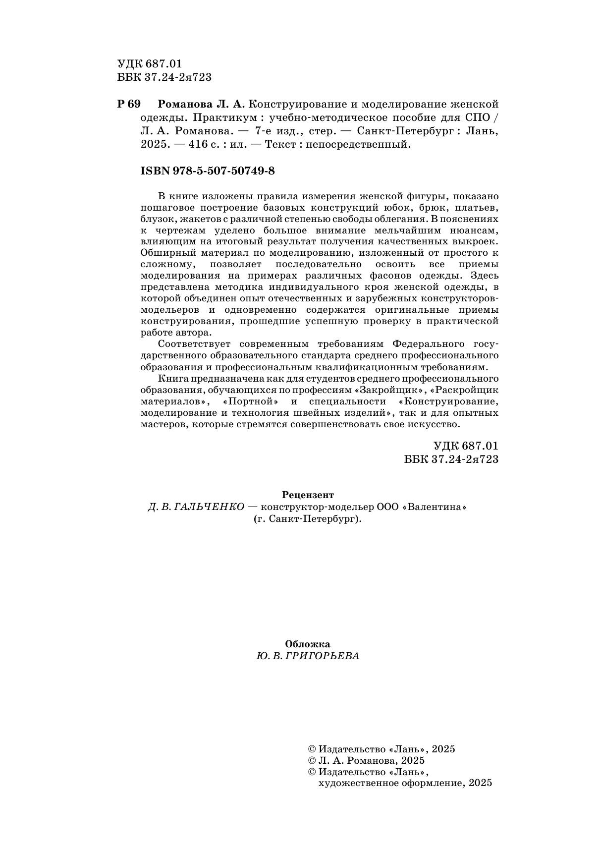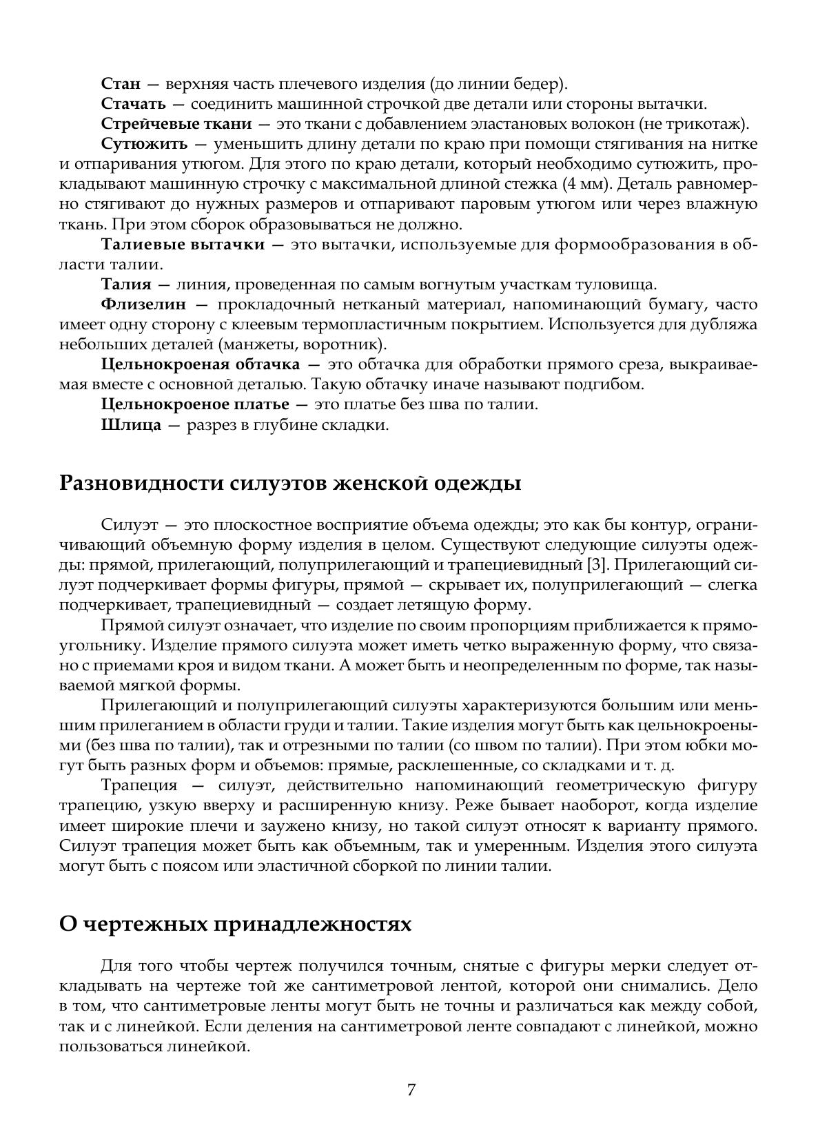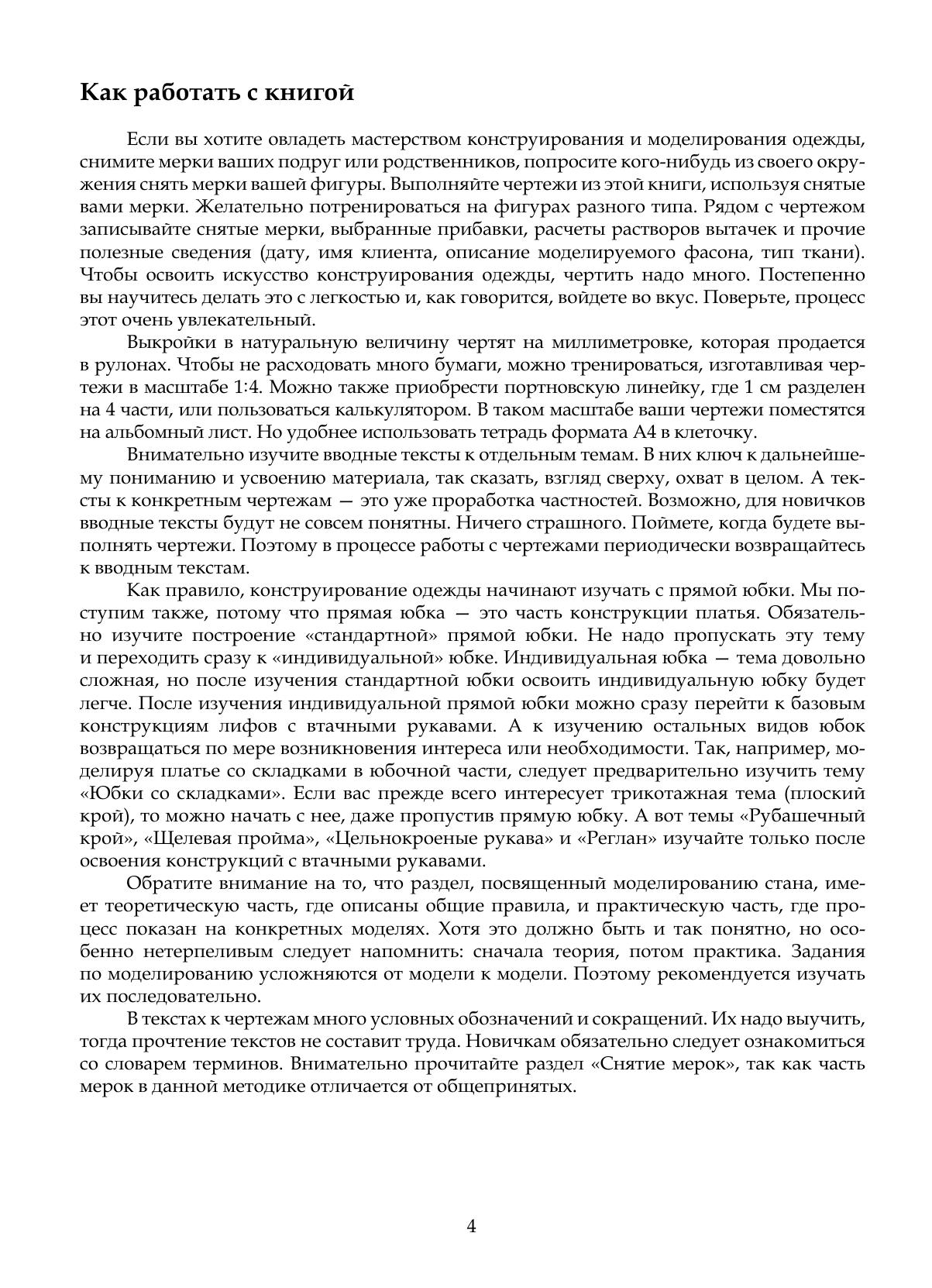 В книге изложены правила измерения женской фигуры, показано пошаговое построение базовых конструкций юбок, брюк, платьев, блузок, жакетов с различной степенью свободы облегания. В пояснениях к чертежам уделено большое внимание мельчайшим нюансам, влияющим на итоговый результат получения качественных выкроек. Обширный материал по моделированию, изложенный от простого к сложному, позволяет последовательно освоить все приемы моделирования на примерах различных фасонов одежды. Здесь представлена методика индивидуального кроя женской одежды, в которой объединен опыт отечественных и зарубежных конструкторов-модельеров и одновременно содержатся оригинальные приемы конструирования, прошедшие успешную проверку в практической работе автора. Соответствует современным требованиям Федерального государственного образовательного стандарта среднего профессионального образования и профессиональным квалификационным требованиям. Книга предназначена как для студентов среднего профессионального образования, обучающихся по профессиям «Закройщик», «Раскройщик материалов», «Портной» и специальности «Конструирование, моделирование и технология швейных изделий», так и для опытных мастеров, которые стремятся совершенствовать свое искусство.