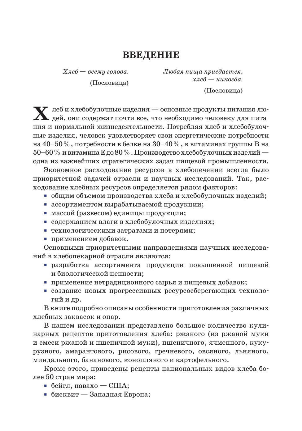В книге подробно описаны особенности приготовления различных хлебных заквасок и опар. Также в книге представлено большое количество кулинарных рецептов приготовления хлеба: ржаного (из ржаной муки и смеси ржаной и пшеничной муки), пшеничного, ячменного, кукурузного, амарантового, рисового, гречневого, овсяного, льняного, миндального, бананового, конопляного и картофельного). Кроме этого, приведены рецепты национальных видов хлеба более 50 стран мира (бейгл, бисквит, брецель и др.). Приведены рецепты приготовления хлебной посуды. Подробно описано использование хлеба в диетологии (хлебная диета Ольги Раз-Кестнер) и народной медицине. Книга может представлять интерес для технологов хлебопекарного производства, работников сферы общественного питания, шеф-поворов, а также широкого круга читателей, интересующихся приготовлением вкусного и полезного хлеба с минимальными затратами сил и времени.