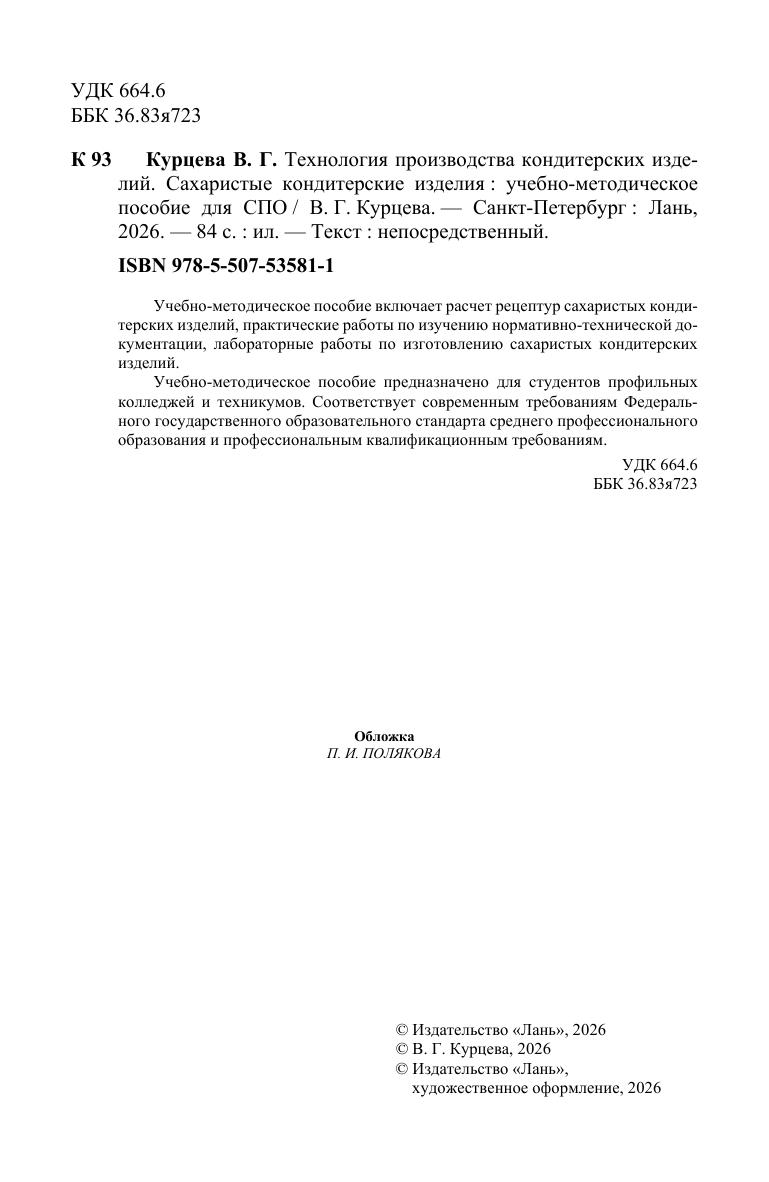 Учебно-методическое пособие включает расчет рецептур сахаристых кондитерских изделий, практические работы по изучению нормативно-технической документации, лабораторные работы по изготовлению сахаристых кондитерских изделий. Учебно-методическое пособие предназначено для студентов профильных колледжей и техникумов. Соответствует современным требованиям Федерального государственного образовательного стандарта среднего профессионального образования и профессиональным квалификационным требованиям.