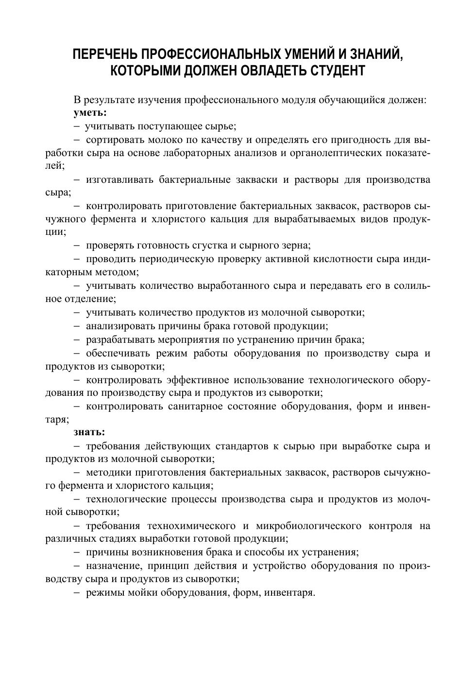 Содержится цикл работ лабораторно-исследовательского, практического характера, предусматривающих проведение исследований состава и технологических свойств сырья, изучение принципов построения технологических схем производства сыров, освоение технологических особенностей их производства, изучение факторов регулирования технологических процессов, проведение контроля соответствия и качества сыров требованиям нормативной документации. Соответствует современным требованиям Федерального государственного образовательного стандарта среднего профессионального образования и профессиональным квалификационным требованиям. Учебное пособие предназначено для студентов техникумов и колледжей, обучающихся по специальностям «Технология продуктов питания животного происхождения», «Зоотехния», «Ветеринария» и работников агропромышленного комплекса.