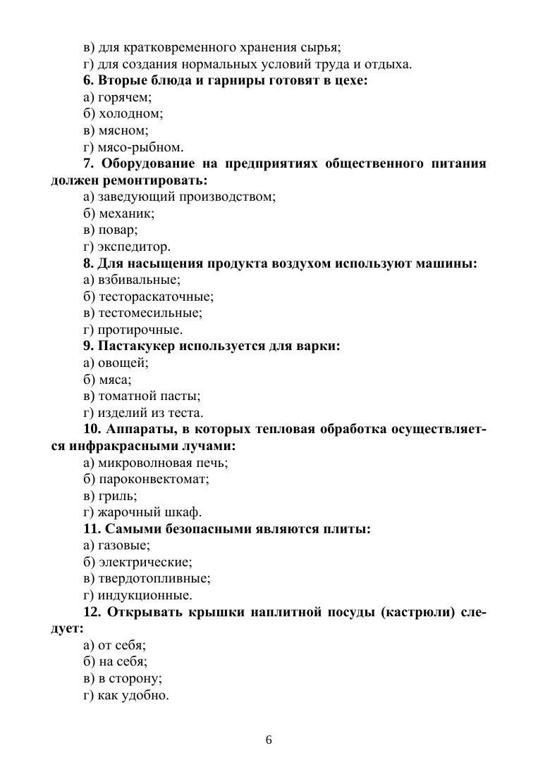 Техническое оснащение и организация рабочего места повара, кондитера. Практикум