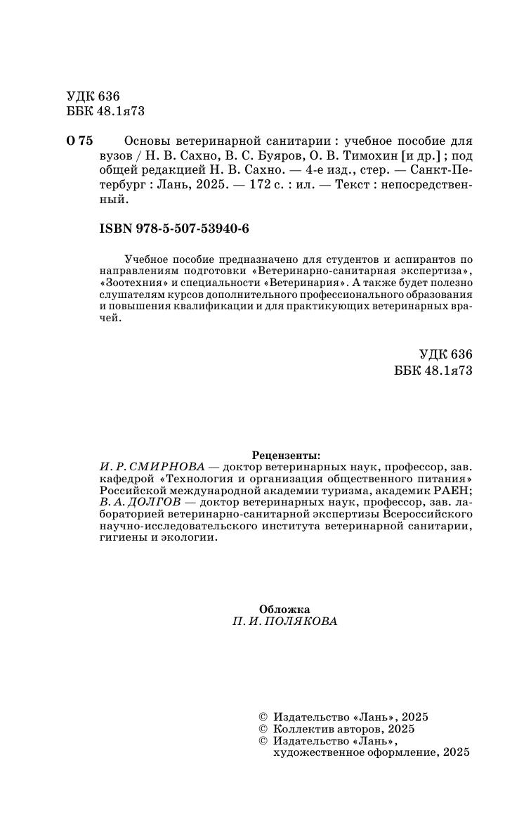 Учебное пособие предназначено для студентов и аспирантов по направлениям подготовки Ветеринарно-санитарная экспертиза, Зоотехния и специальности Ветеринария. А также будет полезно слушателям курсов дополнительного профессионального образования и повышения квалификации и для практикующих ветеринарных врачей.
