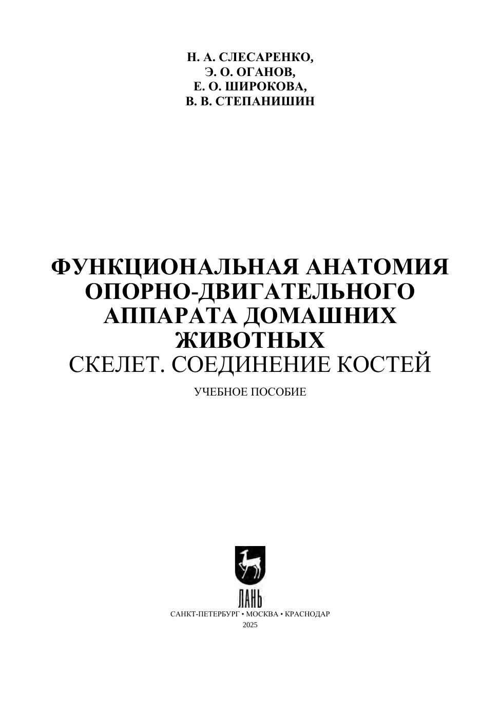 В учебном пособии приведены материалы для самостоятельной работы студентов по «Анатомии домашних животных», разделам «Скелет» и «Соединение костей». Представлены подробные и уточнённые данные по сравнительной и функциональной анатомии скелета и соединению костей, а также оригинальные рисунки и фотографии, выполненные авторами настоящего издания. Учебное пособие предназначено для обучающихся по специальности «Ветеринария» и по направлению подготовки «Ветеринарно-cанитарная экспертиза».