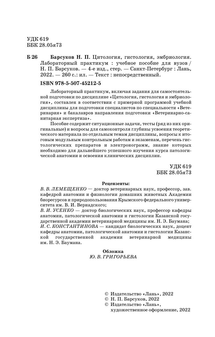 Лабораторный практикум, включая задания для самостоятельной подготовки по дисциплине «Цитология, гистология и эмбриология», составлен в соответствии с примерной программой учебной дисциплины для подготовки специалистов по специальности «Ветеринария» и бакалавров направления подготовки «Ветеринарно-санитарная экспертиза».