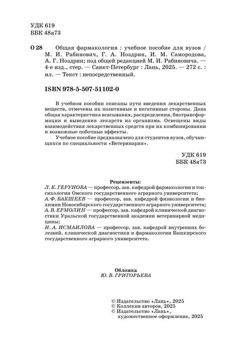 В учебном пособии описаны пути введения лекарственных веществ, отмечены их позитивные и негативные стороны. Дана общая характеристика всасывания, распределения, биотрансформации и выведения лекарств из организма. Освещены виды взаимодействия лекарственных средств при их комбинировании и возможные побочные эффекты. Учебное пособие предназначено для студентов вузов, обучающихся по специальности «Ветеринария».