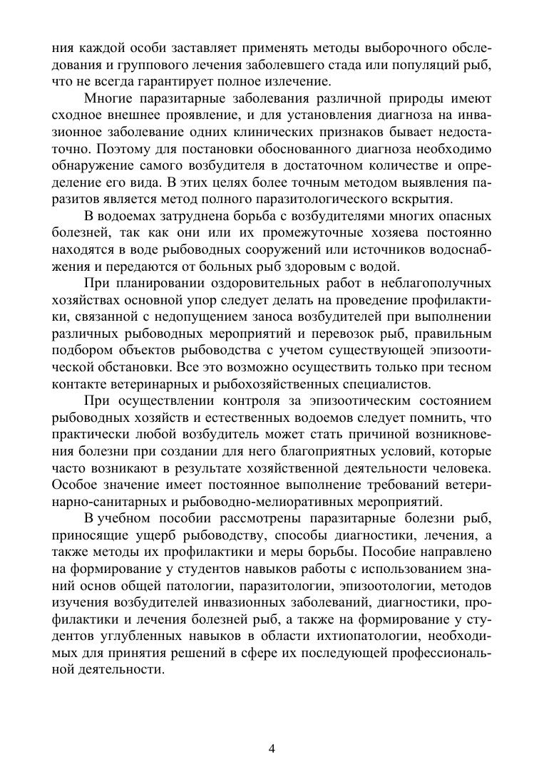 В учебном пособии подробно описаны наиболее распространенные в Российской Федерации и в зарубежных странах паразитарные болезни рыб. Сведения пособия изложены по общепринятой схеме, что позволяет специалистам более оперативно использовать их при диагностике, лечении и профилактике конкретного гельминтозного заболевания животного. Для лучшего усвоения материала пособие иллюстрировано рисунками, отражающими характерные морфологические особенности возбудителей, и клинических признаков болезней. Учебное пособие предназначено для студентов вузов, обучающихся по специальности «Ветеринария» (квалификация «Ветеринарный врач») и по направлению подготовки «Ветеринарно-санитарная экспертиза» (бакалавриат и магистратура). Материалы, представленные в учебном пособии, будут полезны для практических ветеринарных врачей, работников ветеринарных лабораторий, а также для преподавателей ветеринарных вузов. Оно также может быть использованы в качестве учебно-методической литературы при повышении квалификации и дополнительного обучения специалистов различного профиля – ветеринарных врачей и ветеринарно-санитарных экспертов, зооинженеров, руководителей сельскохозяйственных предприятий и фермеров.