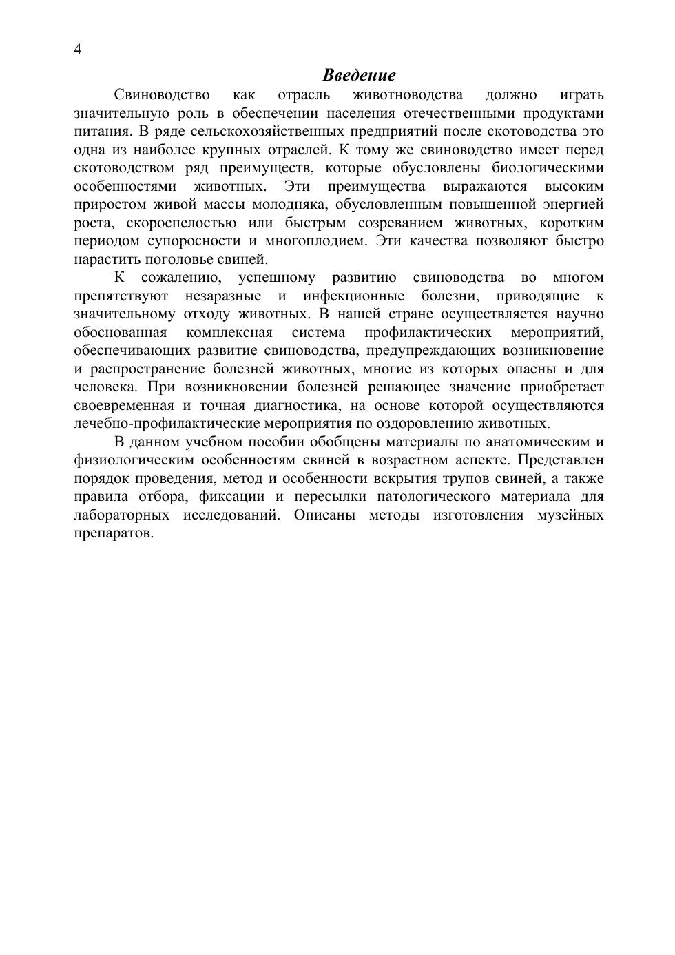 В учебном пособии обобщены материалы по анатомическим и физиологическим особенностям свиней в возрастном аспекте. Представлен порядок проведения, метод и особенности вскрытия трупов свиней, а также правила отбора, фиксации и пересылки патологического материала для лабораторных исследований. Описаны методы изготовления музейных препаратов. Учебное пособие предназначено для студентов ВУЗов, обучающихся по специальности "Ветеринария", практикующим ветеринарным врачам, аспирантам, биологам.