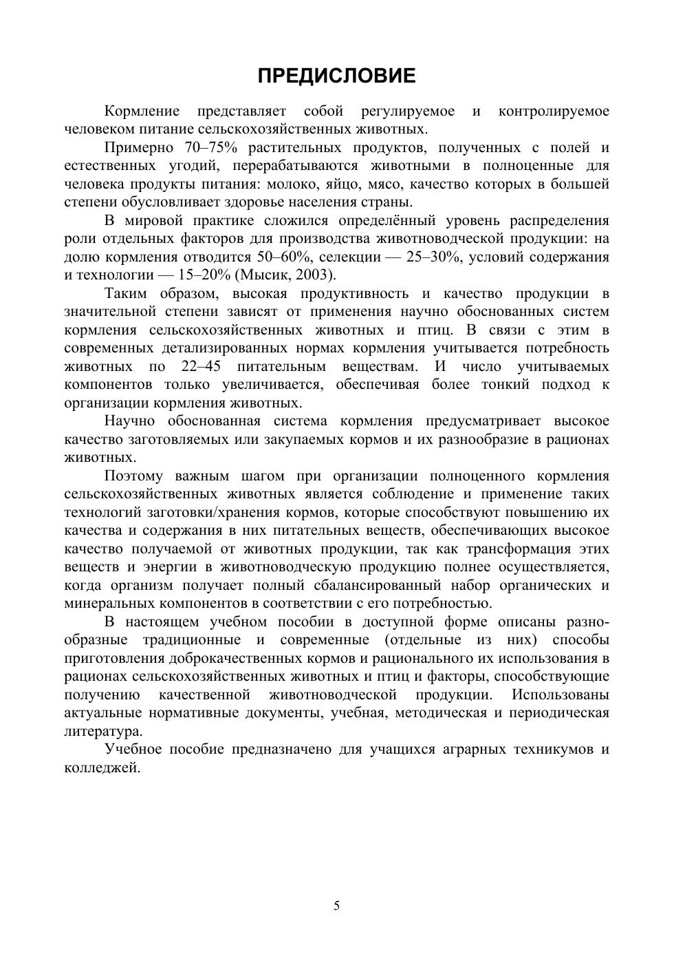 В учебном пособии рассматриваются вопросы технологии заготовки высококачественных кормов, классические методы оценки их питательности и рационального использования в кормлении сельскохозяйственных животных. Приведены современные нормы кормления для сельскохозяйственных животных, структура рационов, факторы, влияющие на качество и питательность производимой продукции. Для закрепления материала представлены вопросы для самопроверки и задачи. Выделен материал о развитии патологий при несбалансированном кормлении животных и птицы. Соответствует современным требованиям Федерального государственного образовательного стандарта среднего профессионального образования и профессиональным квалификационным требованиям. Пособие предназначено для учащихся аграрных техникумов и колледжей.