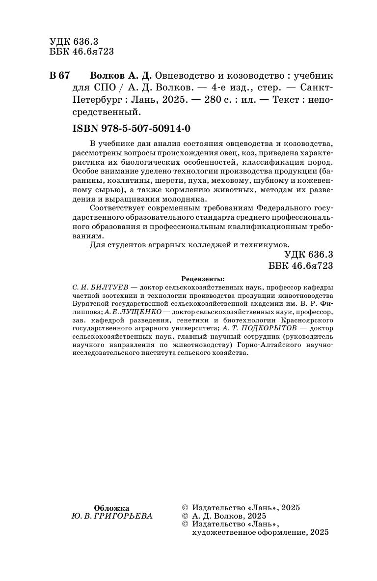 В учебнике дан анализ состояния овцеводства и козоводства, рассмотрены вопросы происхождения овец, коз, приведена характеристика их биологических особенностей, классификация пород. Особое внимание уделено технологии производства продукции (баранины, козлятины, шерсти, пуха, меховому, шубному и кожевенному сырью), а также кормлению животных, методам их разведения и выращиванию молодняка. Соответствует современным требованиям Федерального государственного образовательного стандарта среднего профессионального образования и профессиональным квалификационным требованиям. Для студентов аграрных колледжей и техникумов.
