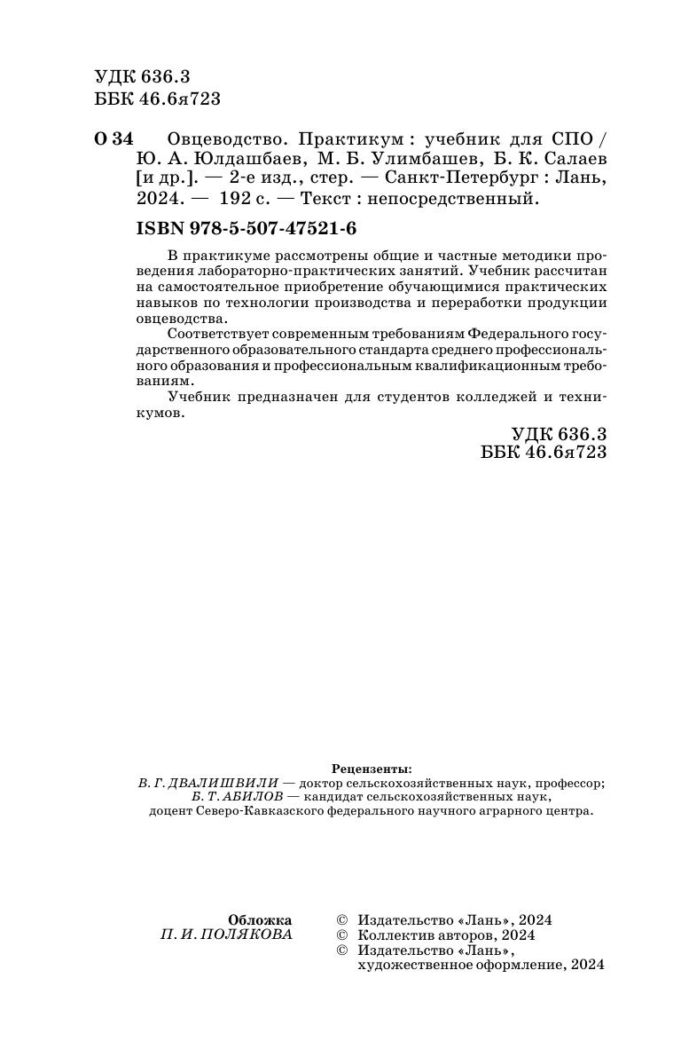 В практикуме рассмотрены общие и частные методики проведения лабораторно-практических занятий. Учебник рассчитан на самостоятельное приобретение обучающимися практических навыков по технологии производства и переработки продукции овцеводства. Соответствует современным требованиям Федерального государственного образовательного стандарта среднего профессионального образования и профессиональным квалификационным требованиям. Учебник предназначен для студентов колледжей и техникумов.