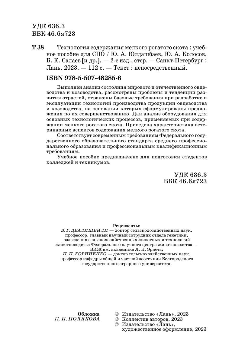 Выполнен анализ состояния мирового и отечественного овцеводства и козоводства, рассмотрены проблемы и тенденции разви-тия отраслей, отражены базовые требования при разработке и эксплуатации технологий производства продукции овцеводства и козоводства, на основании которых сформулированы предложе-ния по их совершенствованию. Дан анализ оборудования для основных технологических процессов, применяемых при содержа-нии мелкого рогатого скота. Приведена характеристика ветери-нарных аспектов содержания мелкого рогатого скота. Соответствует современным требованиям Федерального государственного образовательного стандарта среднего профессионального образования и профессиональным квалификационным требованиям. Учебное пособие предназначено для подготовки студентов колледжей и техникумов.