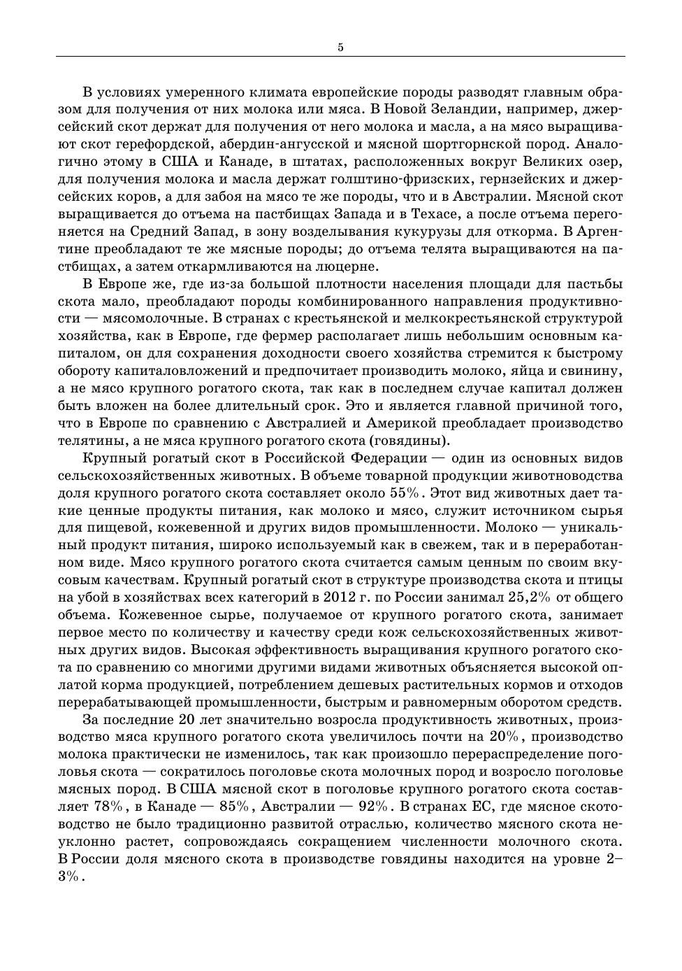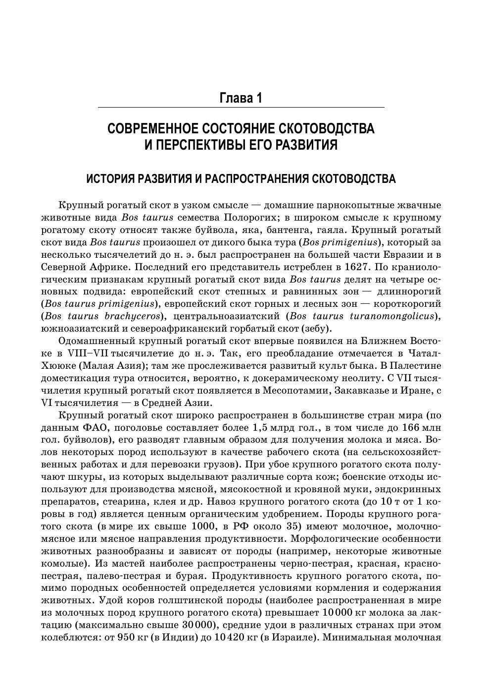 В учебном пособии представлены и обобщены материалы по гигиене и технологиям содержания, разведения и кормления различных производственных и половозрастных групп крупного рогатого скота. Изложен материал по физиологии, этологии и репродукции этих животных, а также основные зоогигиенические и технологические требования к участку, генеральному плану скотоводческих предприятий и помещениям для содержания крупного рогатого скота. Представленный инновационный материал по технологиям выращивания молочного и мясного скота, плотности их размещения позволяет максимально реализовать генетический потенциал их организма для получения соответствующей продукции. Обобщен материал по микроклимату и методах его определения, подробно изложен материал по основам нормированного кормления различных групп крупного рогатого скота. Даны практические рекомендации по проведению общехозяйственных и специальных мероприятий – обеспечивающих ветеринарное благополучие на скотоводческих предприятиях. Структура учебного пособия и логика его изложения соответствует образовательному стандарту и современным учебным программам, и технологиям обучения для СПО. Учебное пособие предназначено для студентов, получающих среднее профессиональное образование в аграрных колледжах, сельскохозяйственных техникумах по специальностям «Зоотехния» и «Ветеринария», а также для учащихся старших классов с углубленным изучением биологии и всех, кто интересуется животноводством, ветеринарией и зоотехнией. Книга также найдет спрос у специалистов и руководителей агропромышленных предприятий и крестьянских хозяйств.
