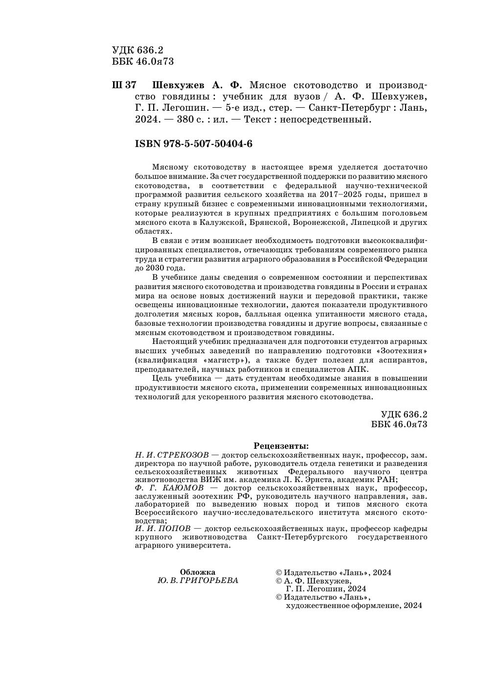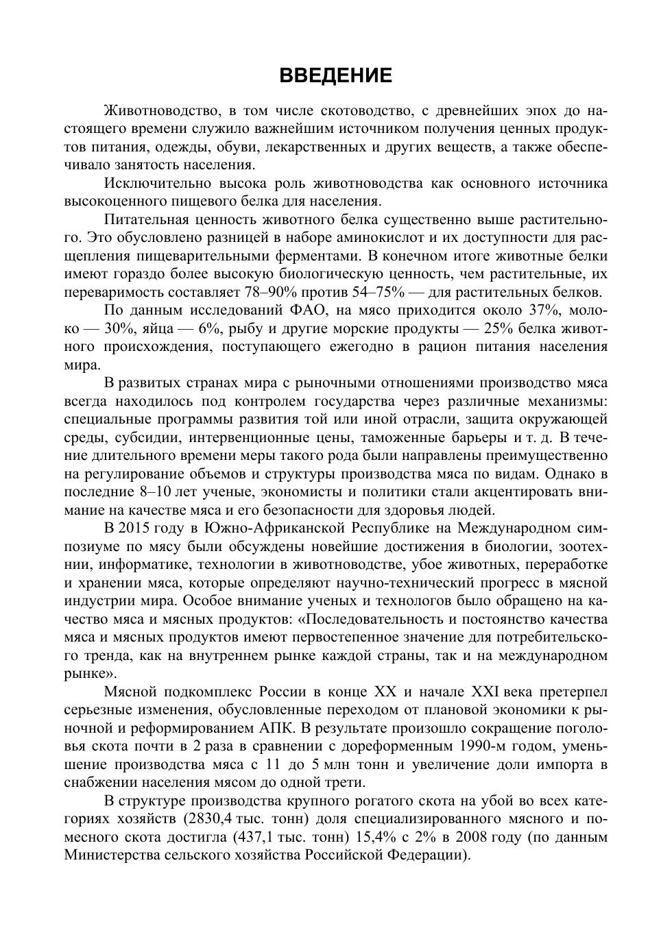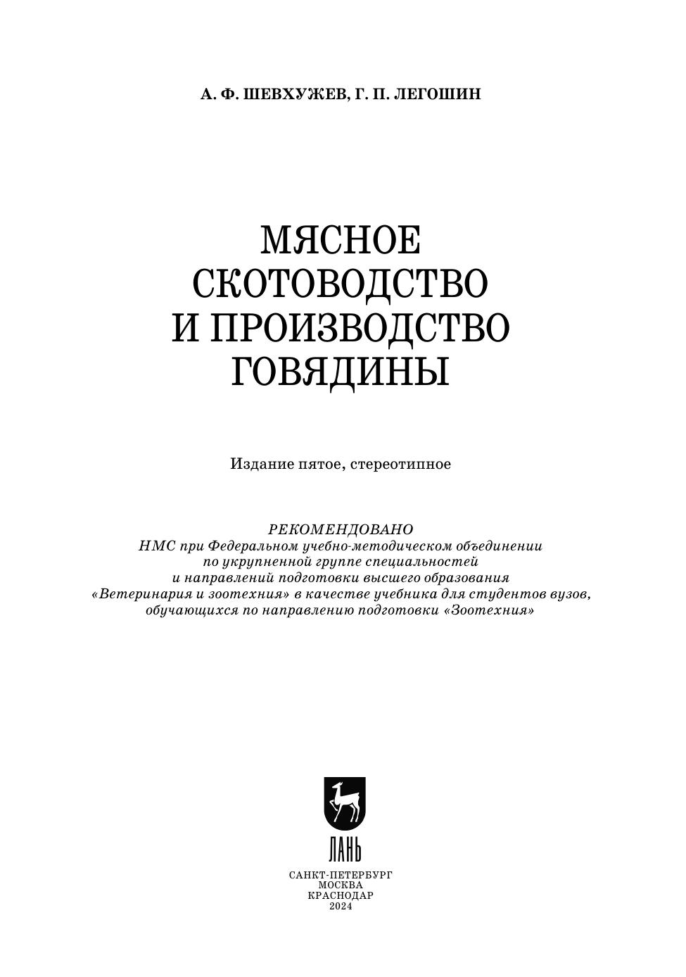 Мясному скотоводству в настоящее время уделяется достаточно большое внимание. За счет государственной поддержки по развитию мясного скотоводства, в соответствии с федеральной научно-технической программой развития сельского хозяйства на 2017–2025 годы, пришел в страну крупный бизнес с современными инновационными технологиями, которые реализовываются в крупных предприятиях с большим поголовьем мясного скота в Калужской, Брянской, Воронежской, Липецкой и других областях.В связи с этим возникает необходимость подготовки высококвалифицированных студентов, отвечающих требованиям современного рынка труда и стратегии развития аграрного образования в Российской Федерации до 2030 года.В учебнике даны сведения о современном состоянии и перспективах развития мясного скотоводства и производства говядины в России и странах мира на основе новых достижений науки и передовой практики, также освещены инновационные технологии,даютсяпоказатели продуктивного долголетия мясных коров, балльная оценка упитанности мясного стада, базовые технологии производства говядины и другие вопросы, связанные с мясным скотоводством и производством говядины.Настоящий учебник предназначен для подготовки студентов аграрных высших учебных заведений по направлению подготовки «Зоотехния» (квалификация «магистр»), а также будет полезен для аспирантов, преподавателей, научных работников и специалистов АПК.Цель учебника – дать студентам необходимые знания в повышении продуктивности мясного скота, применении современных инновационных технологий для ускоренного развития мясного скотоводства.