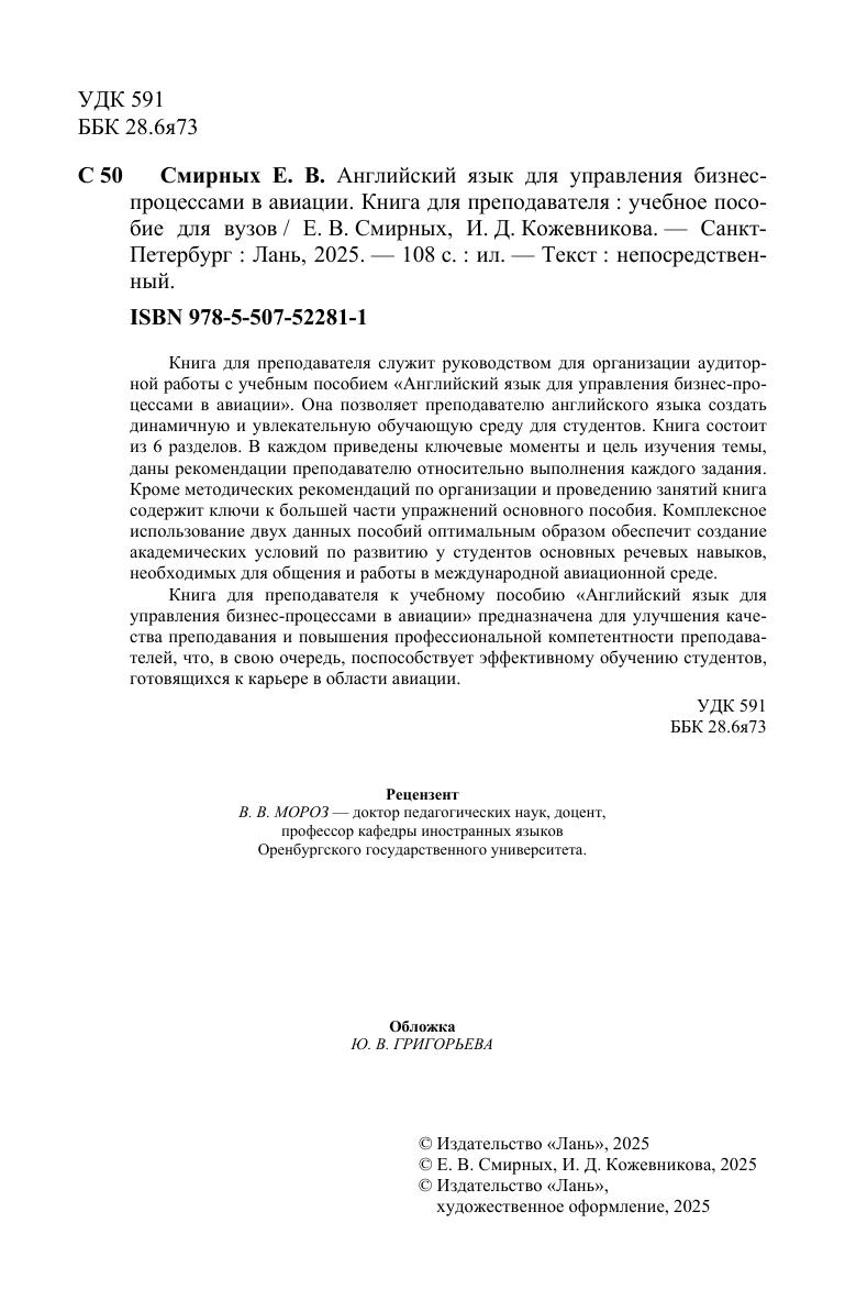 Книга для преподавателя служит руководством для организации аудиторной работы с учебным пособием «Английский язык для управления бизнес-процессами в авиации». Она позволяет преподавателю английского языка создать динамичную и увлекательную обучающую среду для студентов. Книга состоит из 6 разделов. В каждом приведены ключевые моменты и цель изучения темы, даны рекомендации преподавателю относительно выполнения каждого задания. Кроме методических рекомендаций по организации и проведению занятий книга содержит ключи к большей части упражнений основного пособия. Комплексное использование двух данных пособий оптимальным образом обеспечит создание академических условий по развитию у студентов основных речевых навыков, необходимых для общения и работы в международной области авиации. Книга для преподавателя к учебному пособию «Английский язык для управления бизнес-процессами в авиации» предназначена для улучшения качества преподавания и повышения профессиональной компетентности преподавателей, что, в свою очередь, поспособствует эффективному обучению студентов, готовящихся к карьере в авиационной сфере.