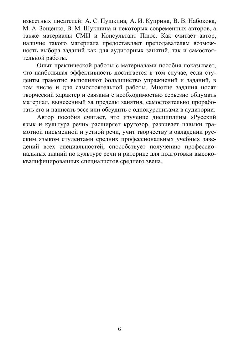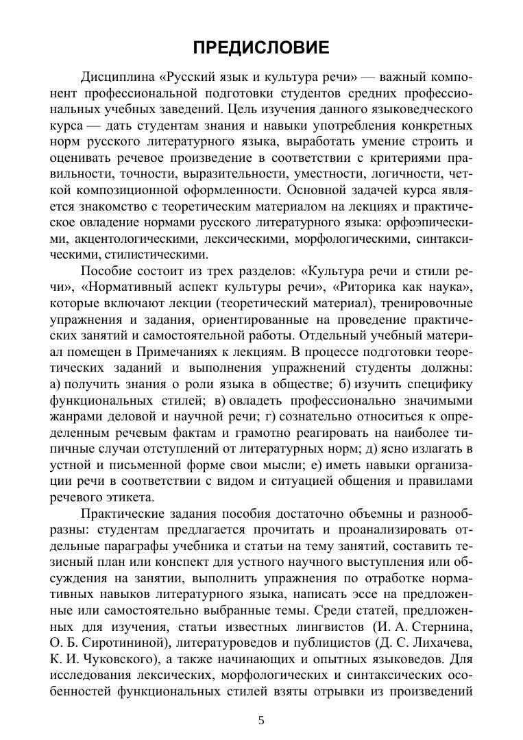 Дисциплина «Русский язык и культура речи» — важный компонент профессиональной подготовки студентов средних профессиональных учебных заведений. Цель данного пособия — дать студентам знания и навыки употребления конкретных норм русского литературного языка, выработать умение строить и оценивать речевое произведение в соответствии с критериями точности, выразительности и четкой композиционной оформленности. Основным методом освоения курса является знакомство с теоретическим материалом на лекциях и практическое овладение нормами русского литературного языка на семинарах. Соответствует современным требованиям Федерального государственного образовательного стандарта среднего профессионального образования и профессиональным квалификационным требованиям. Материал пособия рассчитан на учащихся средних профессиональных учебных заведений всех специальностей, а также будет полезен всем, кто самостоятельно занимается овладением знанием русского языка и культуры речи.