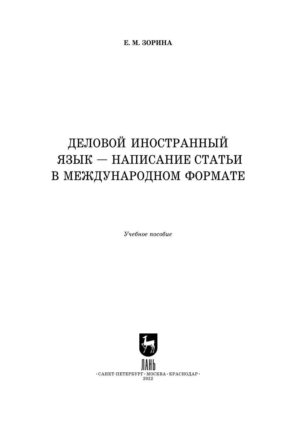 Деловой иностранный язык — написание статьи в международном формате Зорина Е. М.