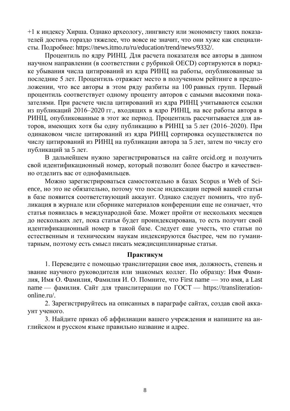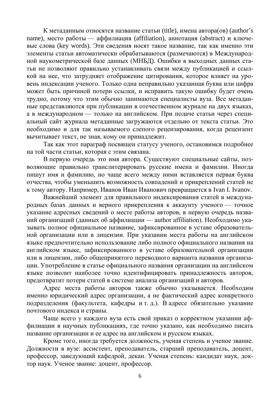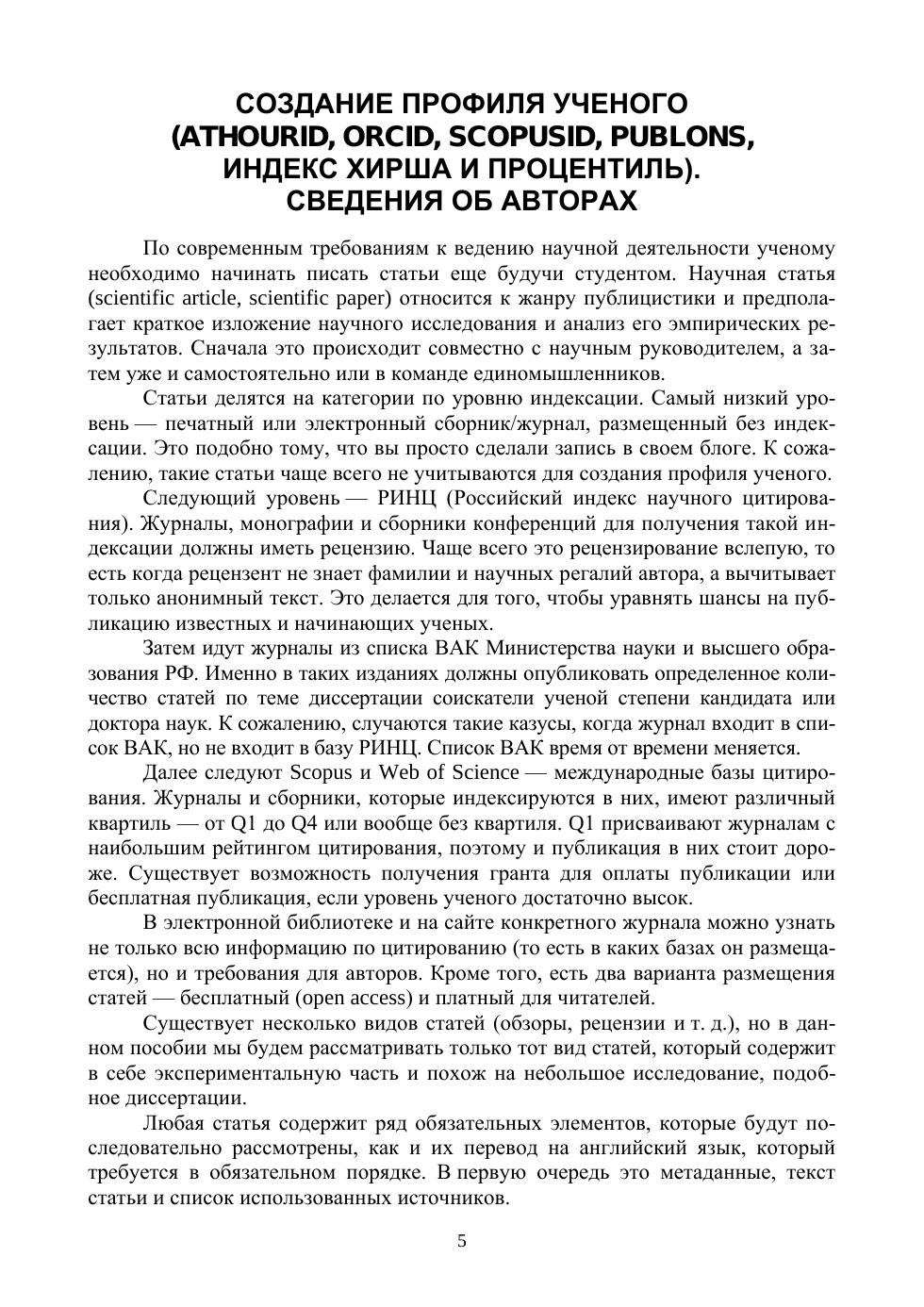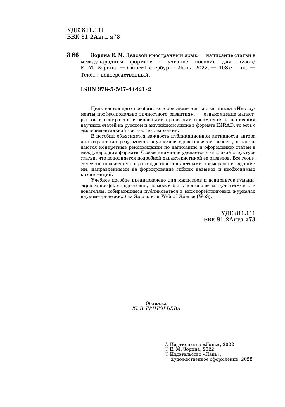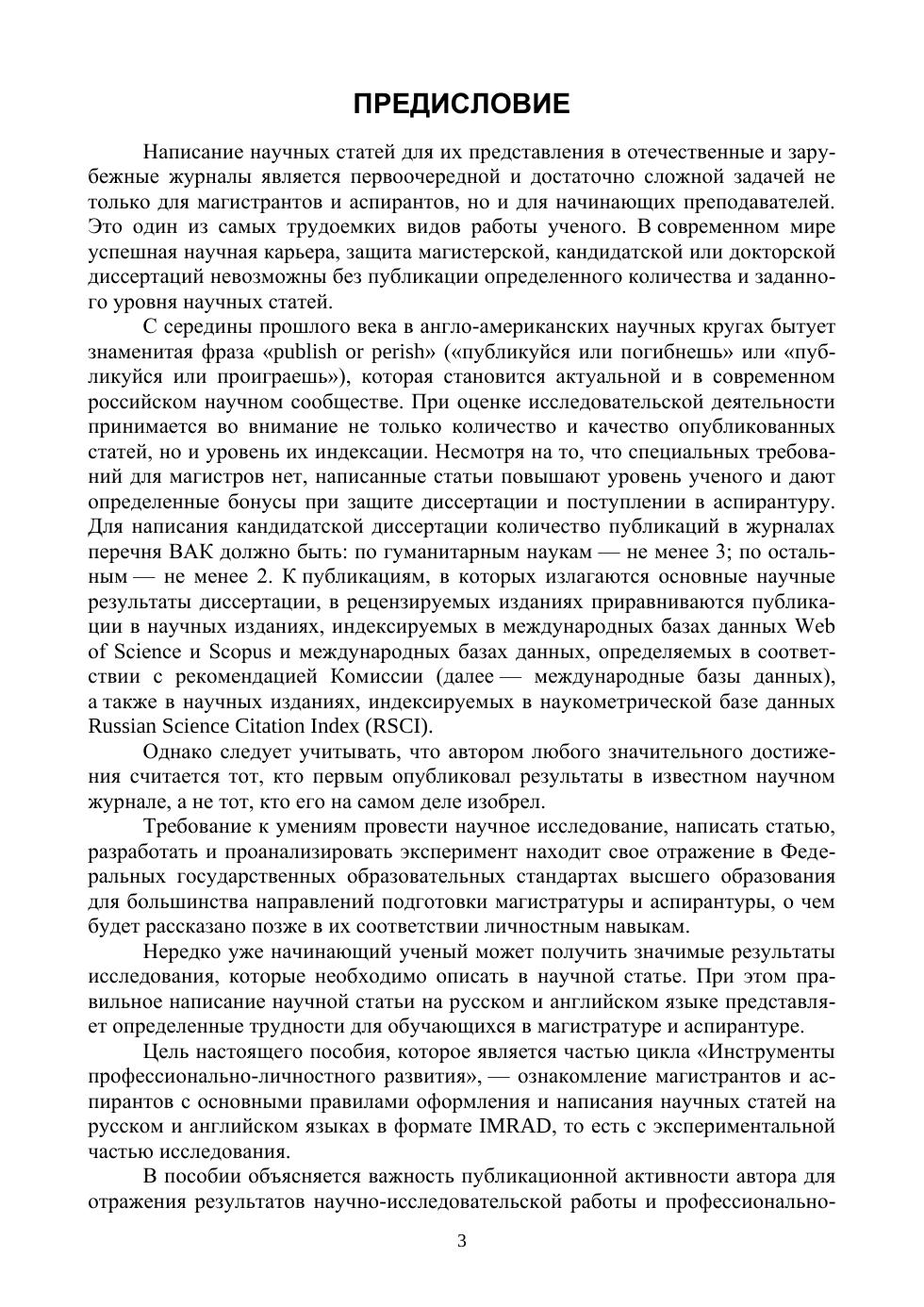 Цель настоящего пособия, которое является частью цикла «Инструменты профессиональноличностного развития», — ознакомление магистрантов и аспирантов с основными правилами оформления и написания научных статей на русском и английском языке в формате IMRAD, то есть с экспериментальной частью исследования. В пособии объясняется важность публикационной активности автора для отражения результатов научноисследовательской работы, а также даются конкретные рекомендации по написанию и оформлению статьи в международном формате. Особое внимание уделяется смысловой структуре статьи, что дополняется подробной характеристикой ее разделов. Все теоретические положения сопровождаются конкретными примерами и заданиями, направленными на формирование гибких навыков и необходимых компетенций. Учебное пособие предназначено для магистров и аспирантов гуманитарного профиля подготовки, но может быть полезно всем студентам-исследователям, собирающимся публиковаться в высокорейтинговых журналах наукометрических баз Scopus или Web of Science (WoS).